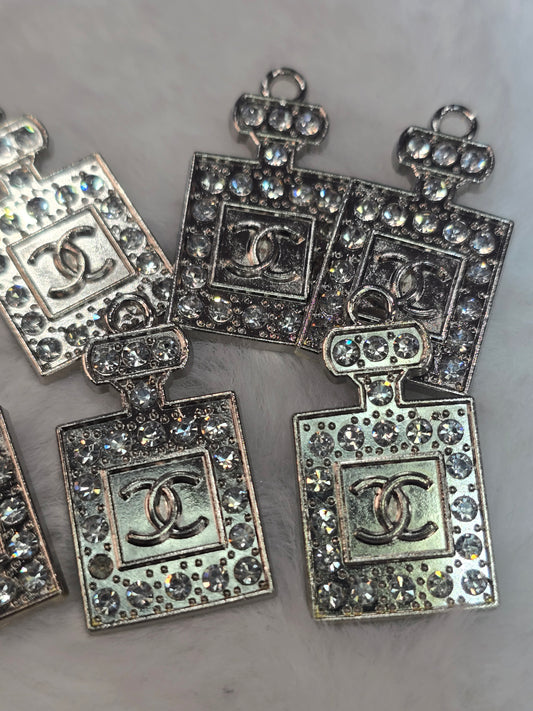 CC Perfume with rhinestone Silver -Metal Charm Pendant