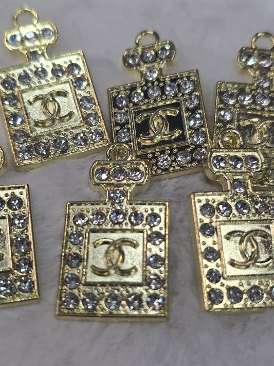 CC Perfume with rhinestone Gold -Metal Charm Pendant