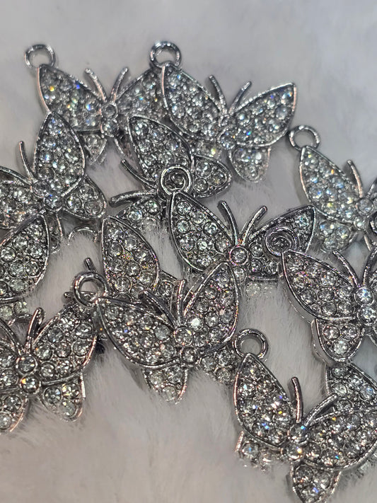 Rhinestone Butterfly silver -Metal Charm Pendant
