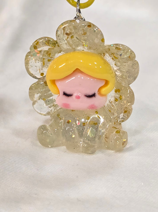 Handmade scrunchies with Acrylic detachable charms- Sleeping wendy popmart- set of 5pcs