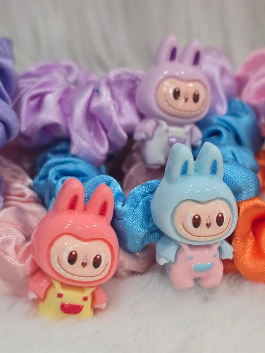 Handmade scrunchies with Acrylic detachable charms- Labubu- set of 5pcs