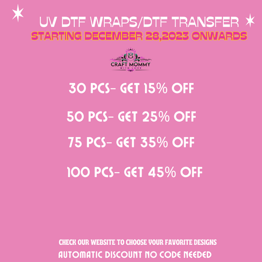 Our prints are ready to use, with no curing time needed. Simply peel, stick, and rub onto the glass to get a stunning finished product. Plus, with no weeding required, you'll save time and effort. Get your beautiful designs on mugs and glasses with ease using our UV DTF Wrap Prints