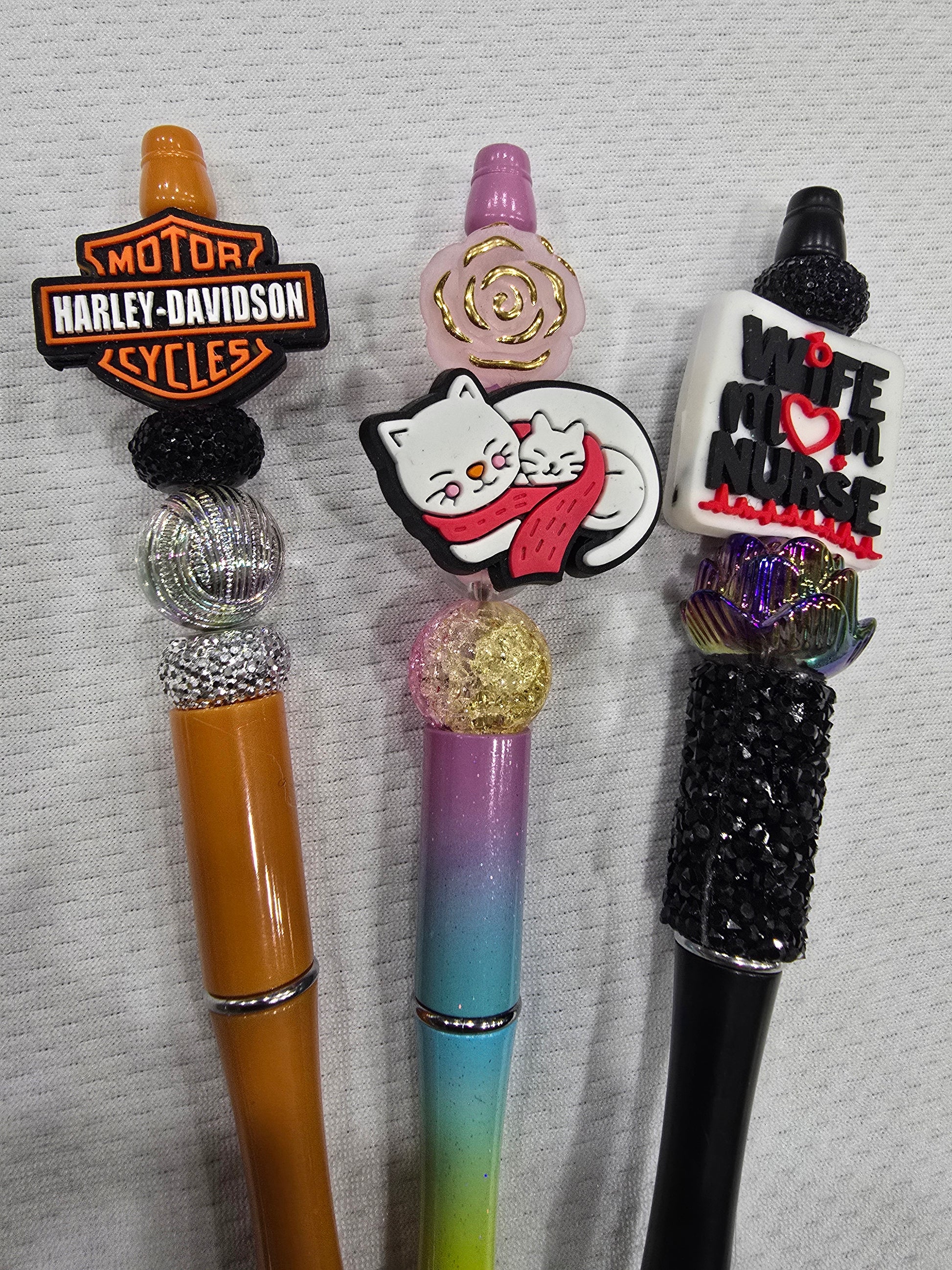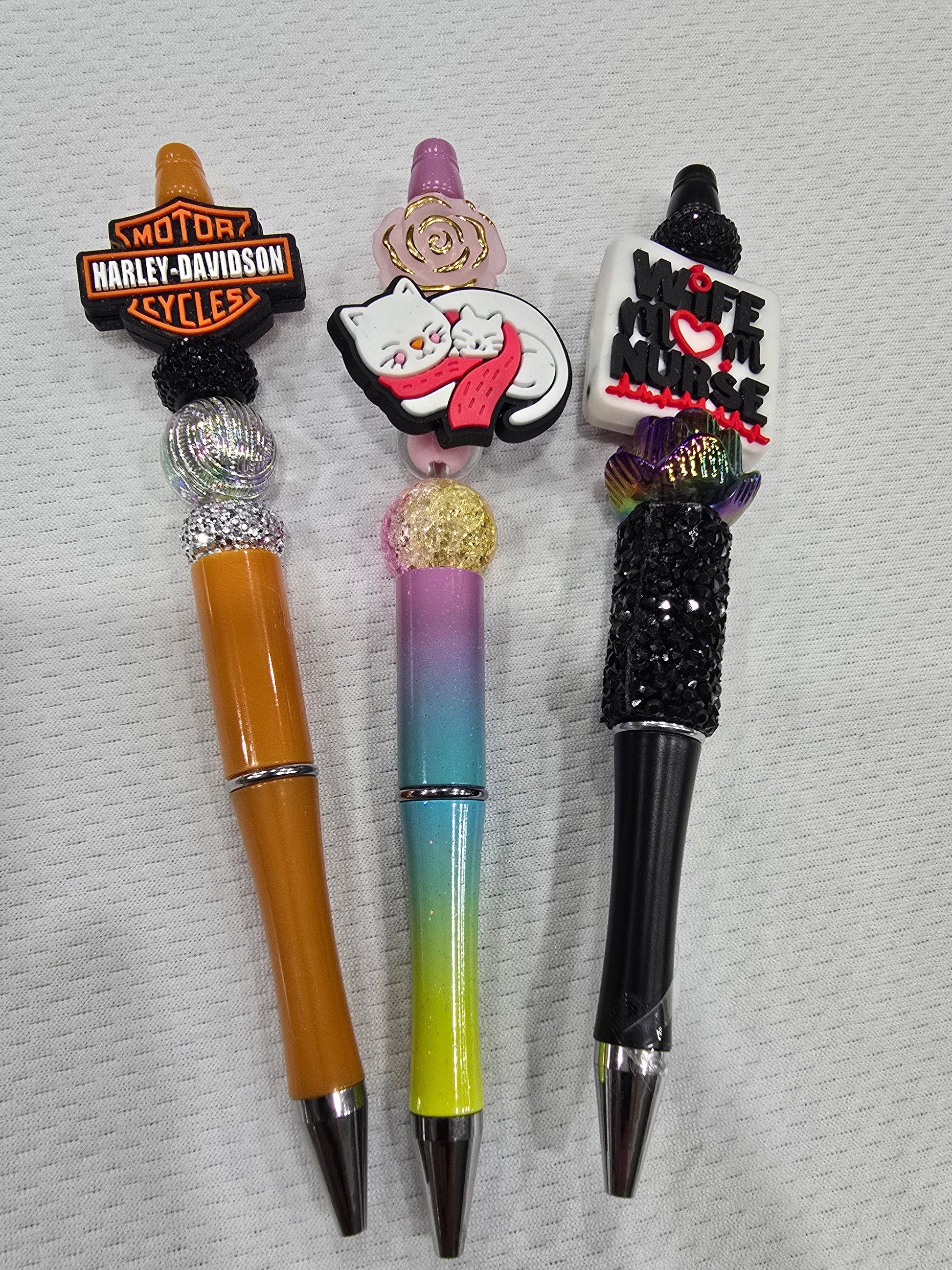 Beadable pen 3pcs mix bundle- Motor HD Cycles,Cat and wife mom and nurse