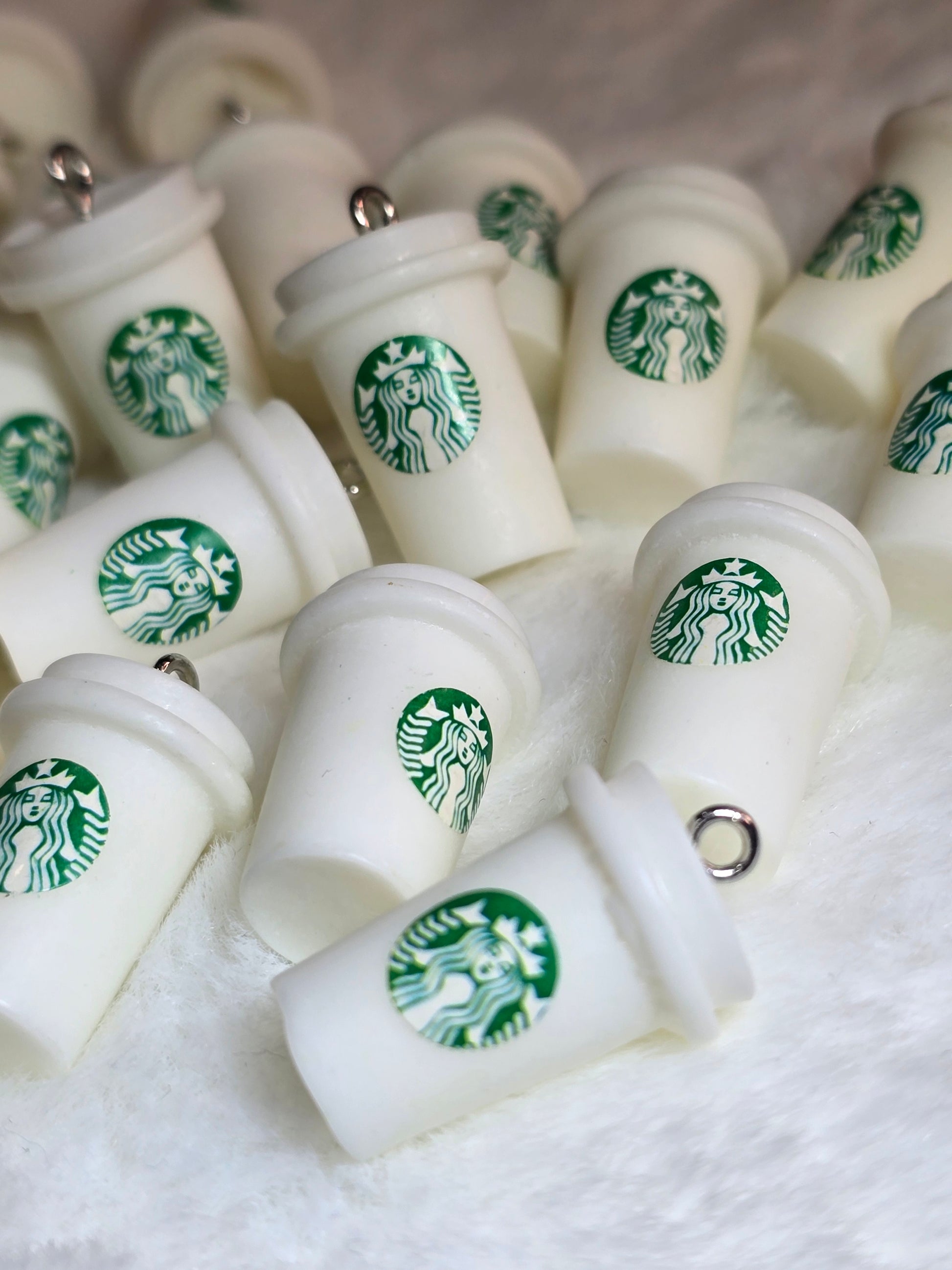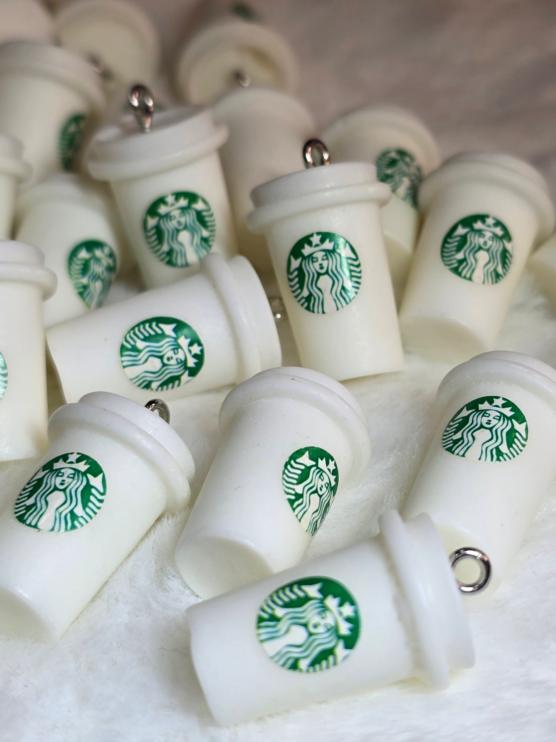 Add a splash of coffee love to your accessories with these Starbucks cup resin charms! Featuring a handy hook, they're perfect for crafting unique keychains or stylish jewelry. Let your creativity brew and turn these cute charms into delightful everyday keepsakes.