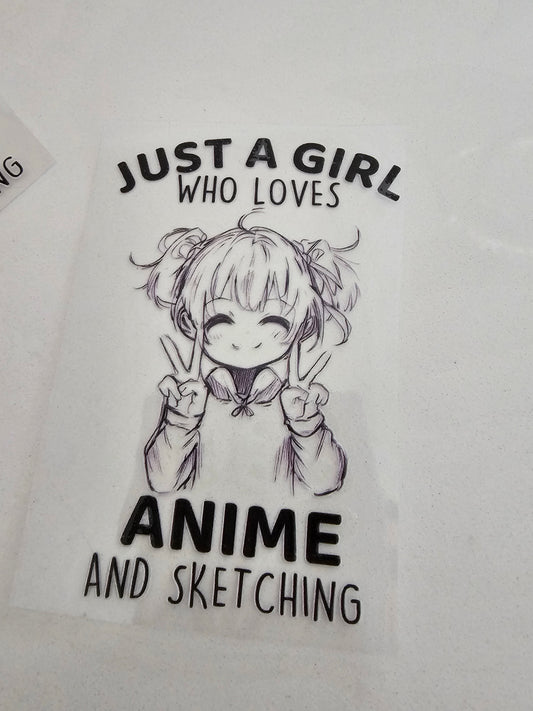 Just a girl who loves anime and sketching (b&w)- UV DTF Decal