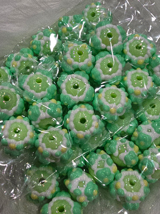 Green with flowers Hand Painted beads 16mm