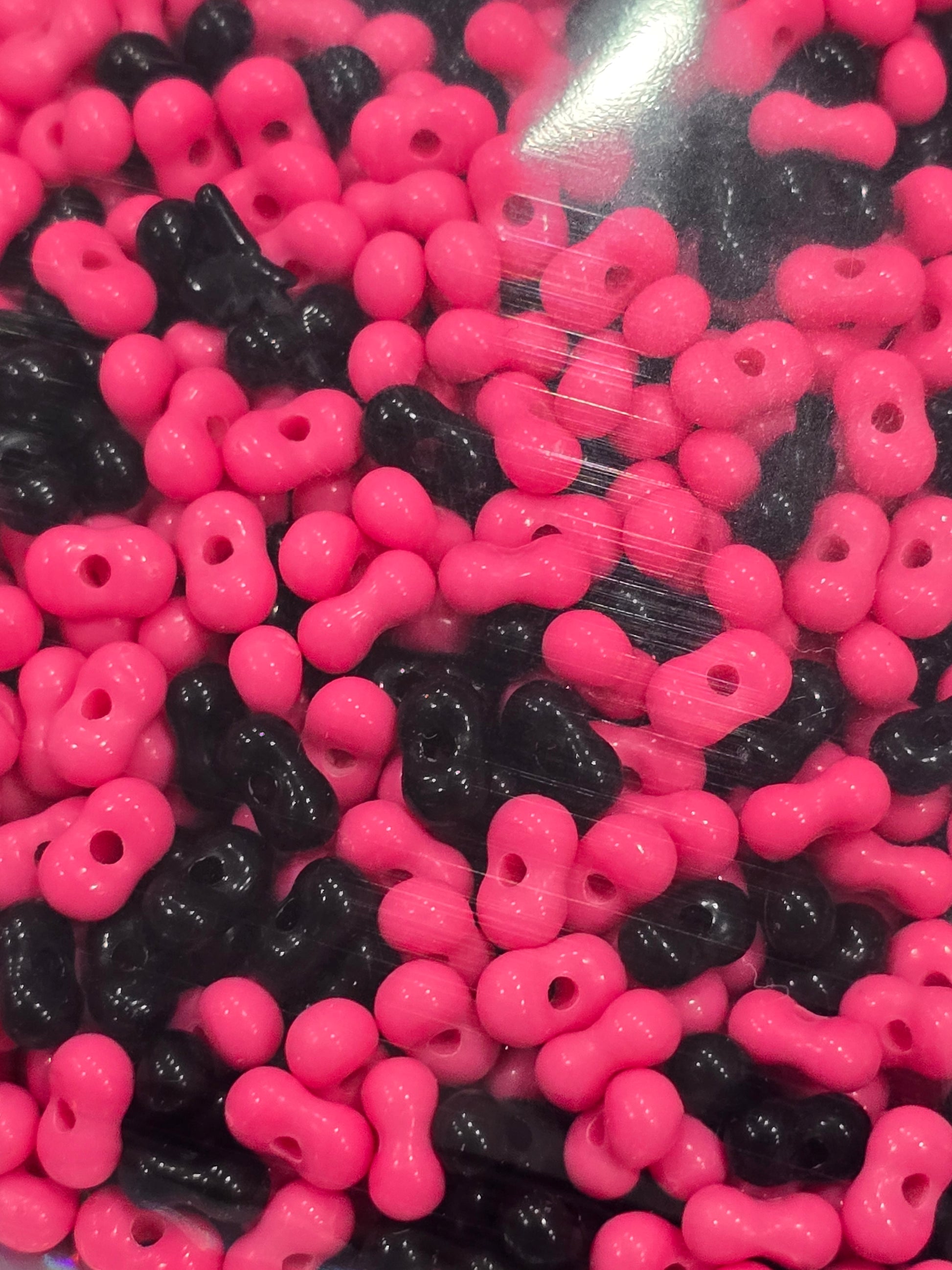 Add vibrant style to your beading projects with these eye-catching peanut beads in classic black and hot pink. Each 4mm bead offers a unique, textured shape perfect for jewelry making, crafts, and embellishments. This 50-gram package provides plenty of beads to complete multiple designs. Ideal for creating bold, modern pieces with striking color contrast. Whether you're a seasoned beader or just starting out, these versatile beads work beautifully in necklaces, bracelets, and mixed-media projects.
