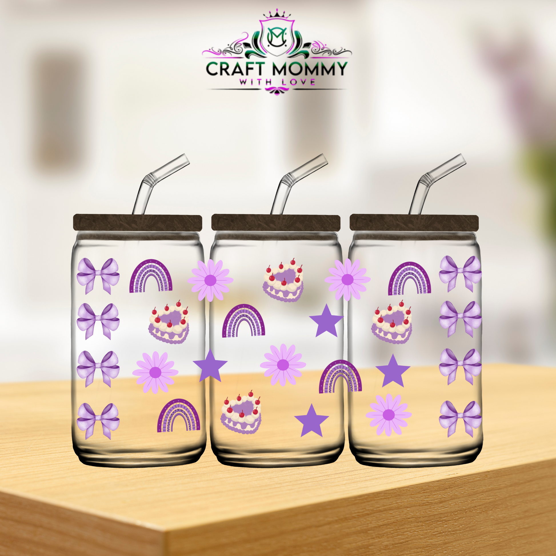 This listing is for one (1) UV DTF adhesive cup wrap for a 16oz Glass Cup size. (Cup not included)